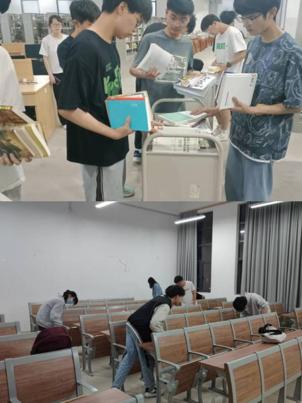 本学期劳动教育实践活动的主要内容包括教室劳动、宿舍劳动、校园劳动、安全保卫劳动等。各班同学按照学院要求合理分配时间,张贴班级值班日志和寝室劳动公约,定期打扫本班包保的教室和宿舍卫生。还在各部门老师的安排和带领下,积极走进校园广场清扫垃圾,走进图书馆擦拭书架、整理书籍。在疫情防控期间配合保卫处做好校园安全巡逻工作,观看首届大国工匠创新交流大会。每位学生都认真完成每一次劳动任务,并在学期结束时撰写了个人劳动教育实践活动总结。