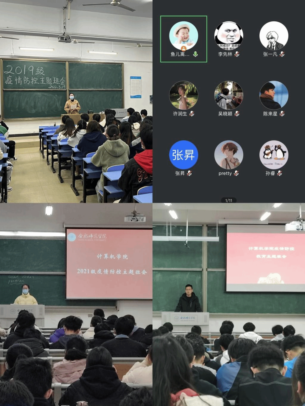 为贯彻落实上级部门及学校关于新型冠状病毒肺炎疫情防控的工作部署,切实提升我院学生的个人防护意识和能力,计算机学院各年级于3月18日——19日分别在锦绣校区和滨湖校区召开疫情防控主题班会。