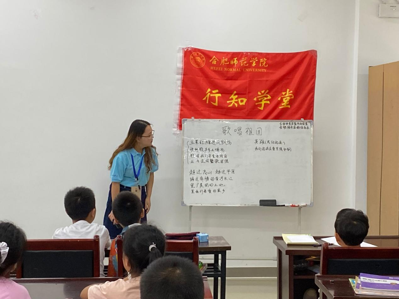 7月9日上午,计算机学院经开区始信社区行知学堂开授党史学习和音乐鉴赏课,课堂上歌声如潮,经久不息,小先生和小学员们在热情讴歌中国共产党百年征程中表达赤子之心。
