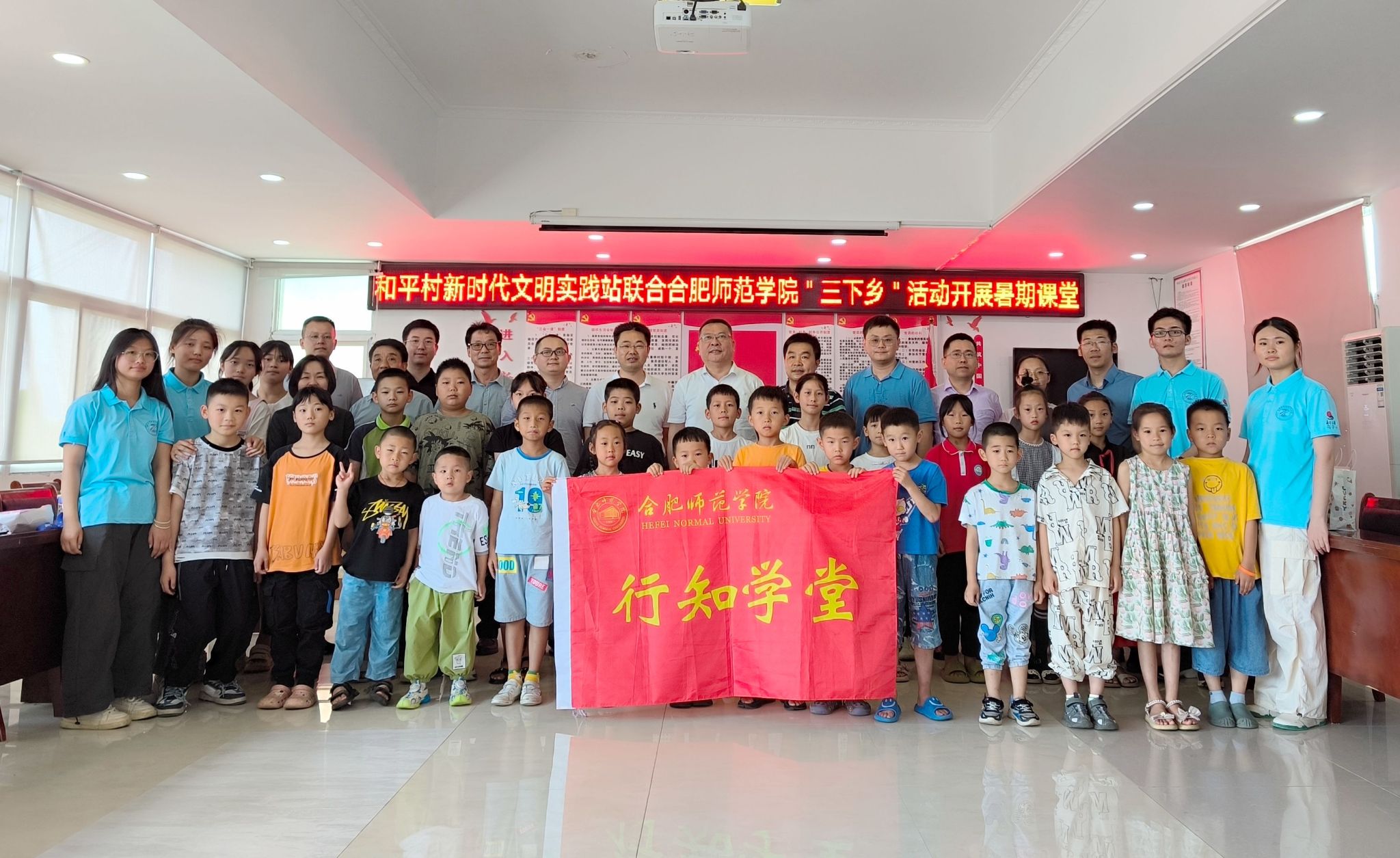 7月23日,院党委书记徐成钢在党政办、纪委办、团委、365best体育亚洲官网等单位负责人陪同下,冒着高温酷暑,来到六安市叶集区平岗街道和平村看望慰问在这里开办“行知学堂”的“小先生”和小学员,并深入叶集区部分企业园区开展访企拓岗,调研产业发展情况。叶集区委书记郑武军,叶集区委常委、组织部部长胡四军,团六安市委副书记苏原,团叶集区委书记彭瑞等热情接待了徐成钢一行。