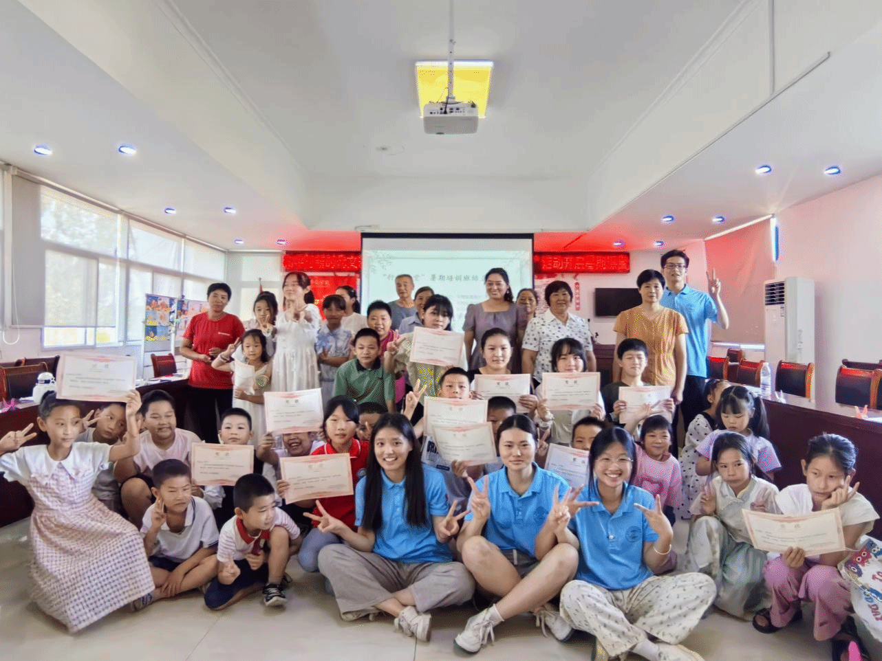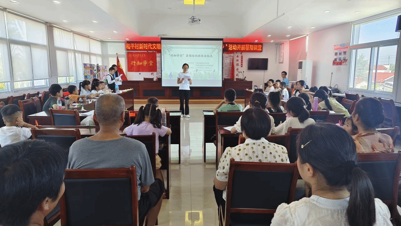 7月31日上午,为期21天的365best体育亚洲官网六安叶集行知学堂在平岗街道和平村村部二楼会议室举办结业仪式。和平村支部书记王兆红,行知学堂全体“小先生”,20余名小学员及部分家长参加活动。