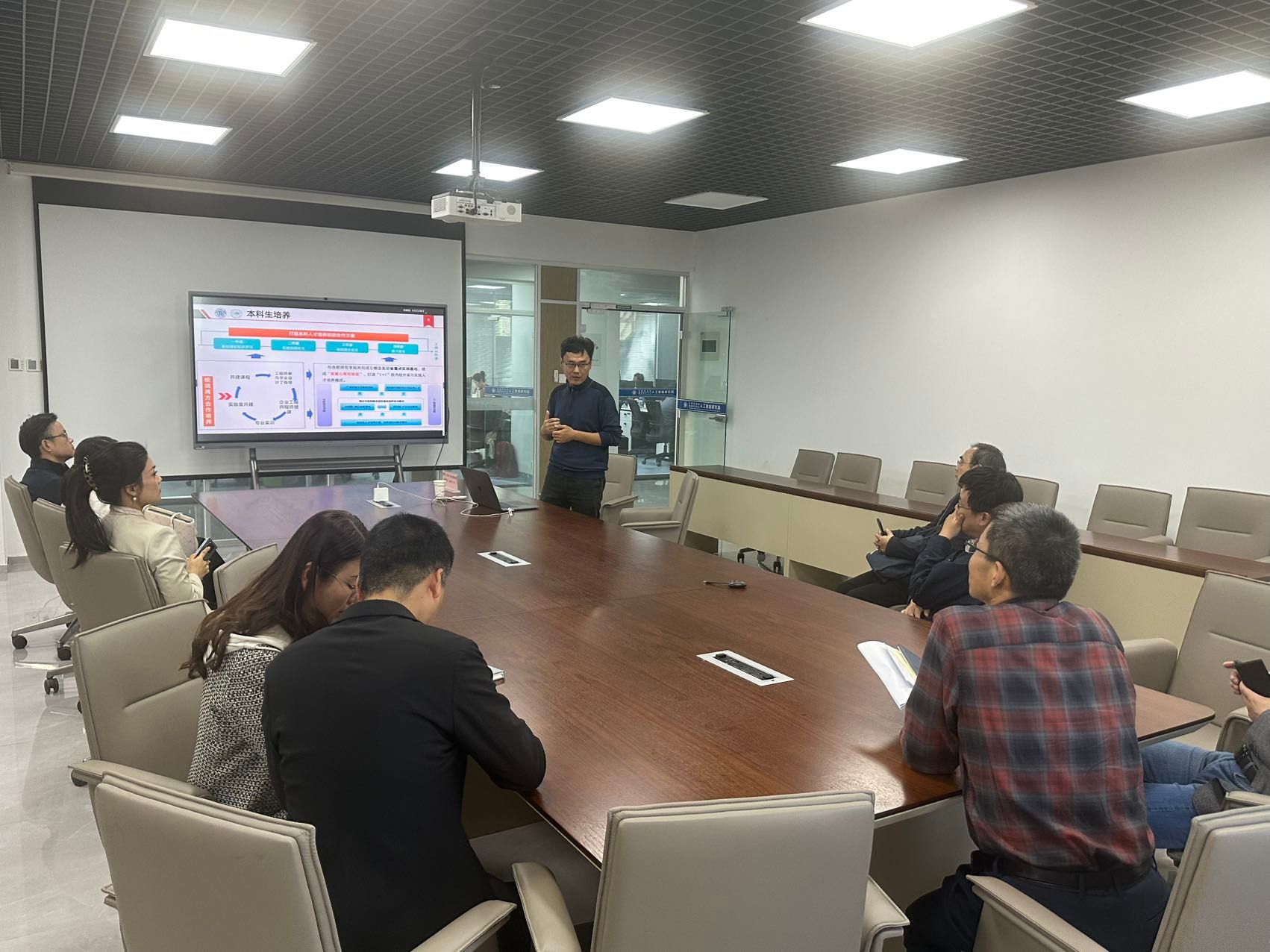 2024年10月24日,安徽省教育厅高教处处长高原一行来访合肥综合性国家科学中心人工智能研究院,考察了365best体育亚洲官网与合肥综合性国家科学中心人工智能研究院共同成立的“智慧心育”省级校外实践基地。基地负责人苏喻向高原一行进行汇报,合肥综合性国家科学中心人工智能研究院副院长李兴权、安徽医科大学人事处副处长高杉、中国科学院合肥物质科学研究院人事处副处长王辉、安徽财贸职业学院人事处处长吴元君、安徽省人社厅专技处二级调研员李永坤、省教育厅高教处一级主任科员任雯君共同参加了本次工作汇报。
