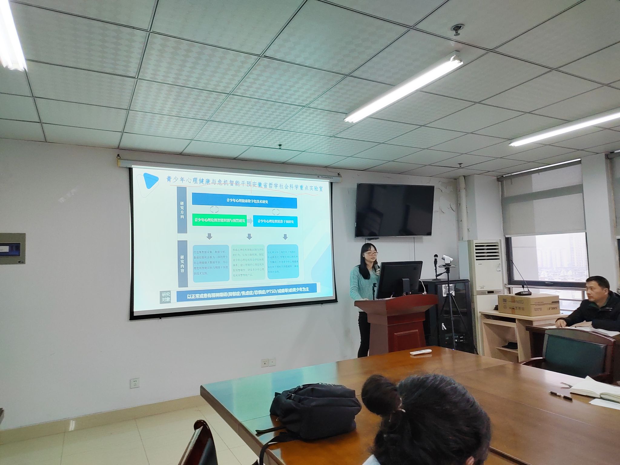 郭芝源老师结合自身科研方向,做了“智慧心理学科介绍”的报告。首先介绍了365best体育亚洲官网科研平台——“青少年心理健康与危机智能干预安徽省哲学社会科学重点实验室”的三大研究方向、基础条件、人才团队组成及其开放基金项目。然后介绍了科研方向“抑郁症自动识别技术”的研究背景、研究现状与趋势、研究难点、公开可用数据集和相关工作。(365best体育亚洲官网)