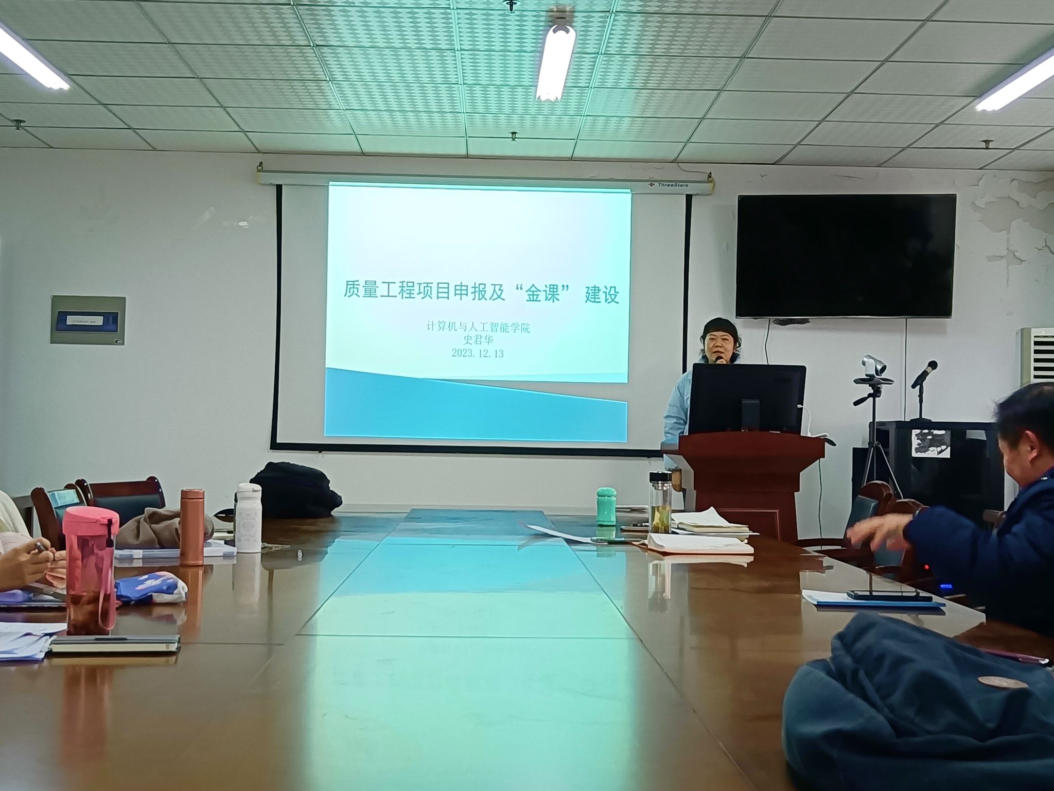 史君华老师为大家做了题为“质量工程项目申报及‘金课’建设”的报告,以“数据结构”课程为例,介绍了如何撰写课程类质量工程项目申报书,课程组在理论及实验课建设中的具体措施,尤其是如何调动学生积极性,引导学生主动积极的学习,提高课程建设质量,最后介绍了课程组下一步建设及改进的方向。